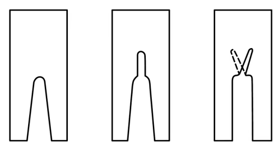 Les formes d'ouverture typiques à l'entrée des grilles de déionisation dans les chambres de coupure des disjoncteurs basse tension contrôlent le chemin d'entrée, d'allongement et de division de l'arc grâce à une conception géométrique. Les trois schémas correspondent respectivement à des configurations AC et DC courantes :